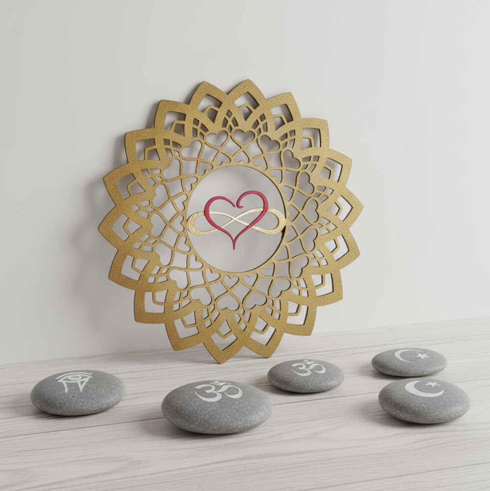 Ručně navržená a zlatě stínovaná mandala „Nekonečná láska”