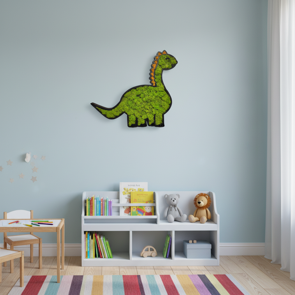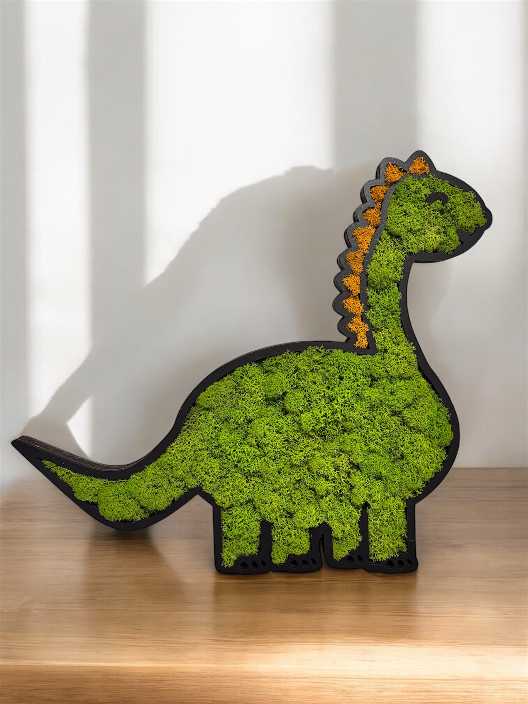 Představujeme Vám novinku z naší dílny – mechového dinosaura , který nadchne všechny malé objevitele a milovníky pravěku! Tento originální kousek o velikosti 40 × 36 cm je vytvořen z jemného sobího mechu v přírodních odstínech a zasazen do lakovaného dřevěného rámu v elegantní černé barvě.