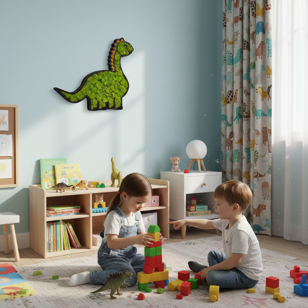 Mechový dinosaurus přinese do dětského pokoje nejen kousek přírody, ale i hravost a fantazii. Skvěle doplní interiér dětského království a stane se společníkem při každém dobrodružství.
