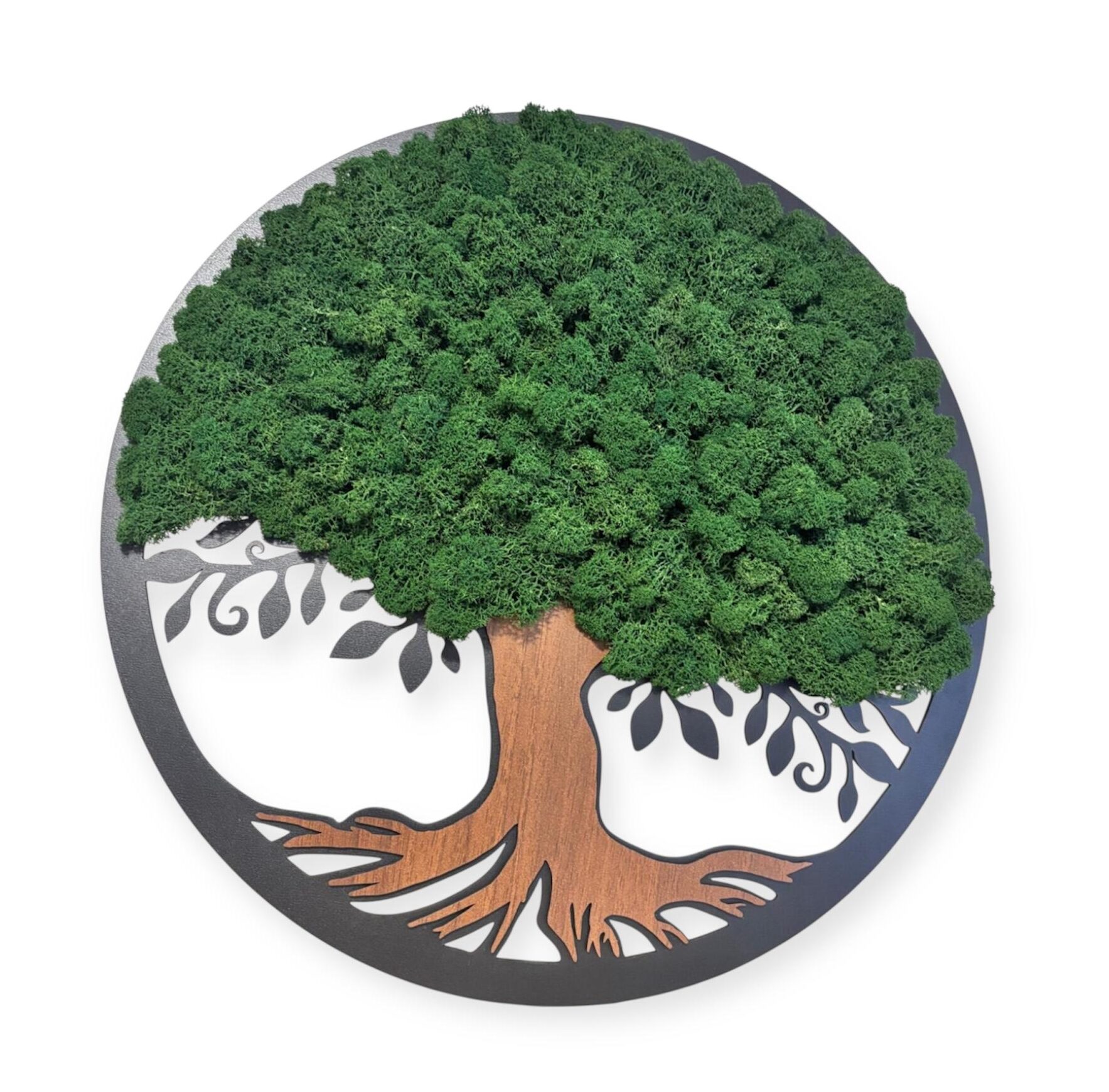 Mechový strom je vyroben ze stabilizovaného Sobího mechu nejvyšší kvality z Finska. V současnosti jeden z nejvíce používaných k tvorbě mechových obrazů. Mech používám v několika různých barevných odstínech. Je velmi příjemný na dotek, má špongiovitou strukturu a dodává se ve větších trsech, které jsou rozdělovány dle potřeby.