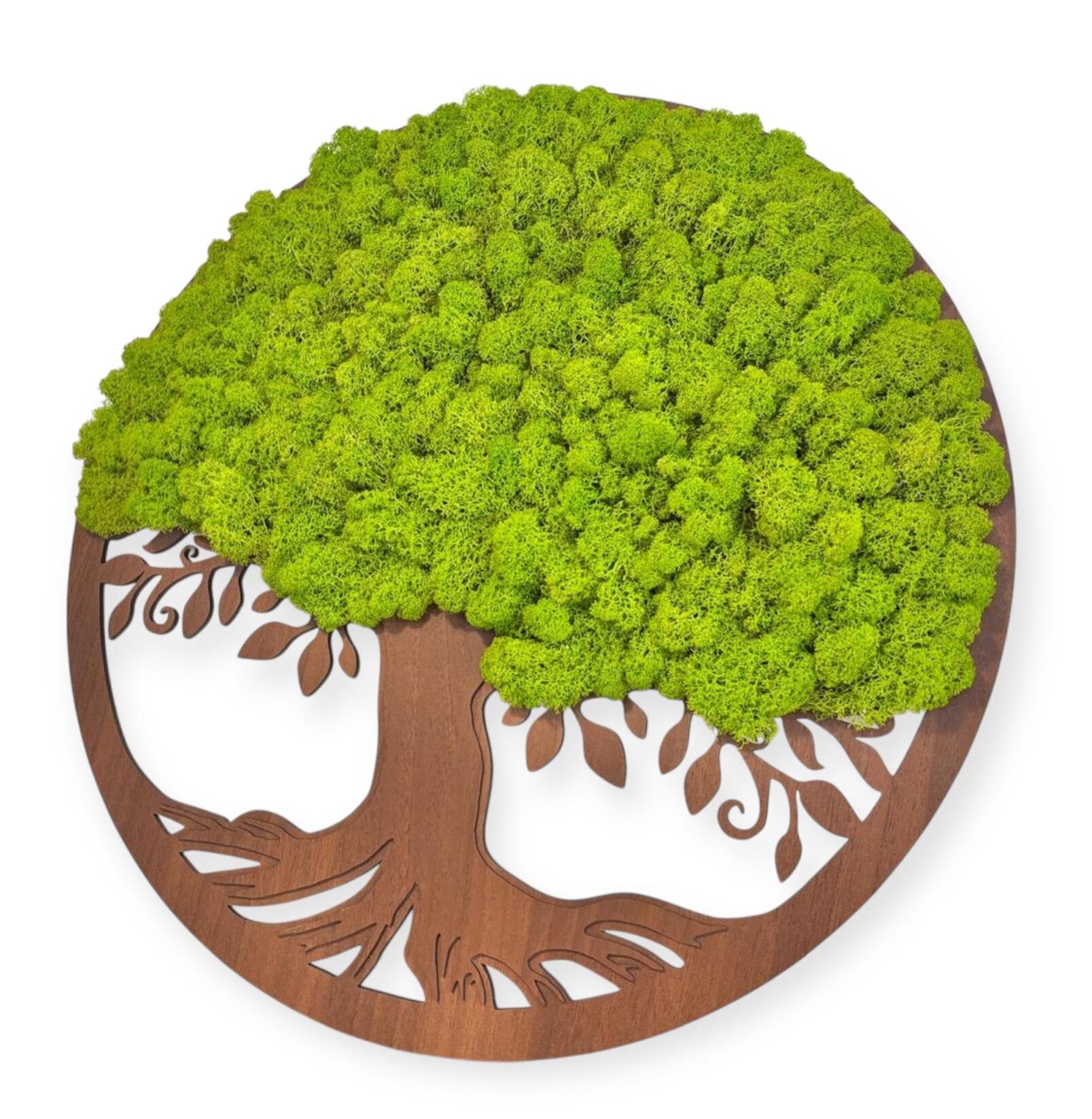 Tento jedinečný mechový obraz motiv Stromu života, symbolizujícího naději, sílu a propojení všech forem života. Je vytvořen z kvalitního stabilizovaného mechu, který si zachovává svou svěží barvu a přirozenou texturu bez potřeby údržby. Díky svému většímu průměru 59 cm působí obraz jako vkusný a vyvážený doplněk, který vnáší do každého interiéru dotek přírody.